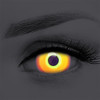 Embody the unsettling intensity of a character's unique gaze. UV Niffty Red 17mm Mini Sclera contacts feature a striking design with a vibrant red outer ring, transitioning to a glowing yellow-orange mid-section, and culminating in a distinct bright green inner circle around the pupil. This bold, multi-layered pattern, combined with its UV reactive properties, creates an unforgettable, menacing glow under blacklight, perfect for truly bringing a terrifying or fantastical character to life with extended eye coverage.